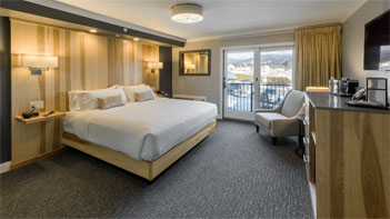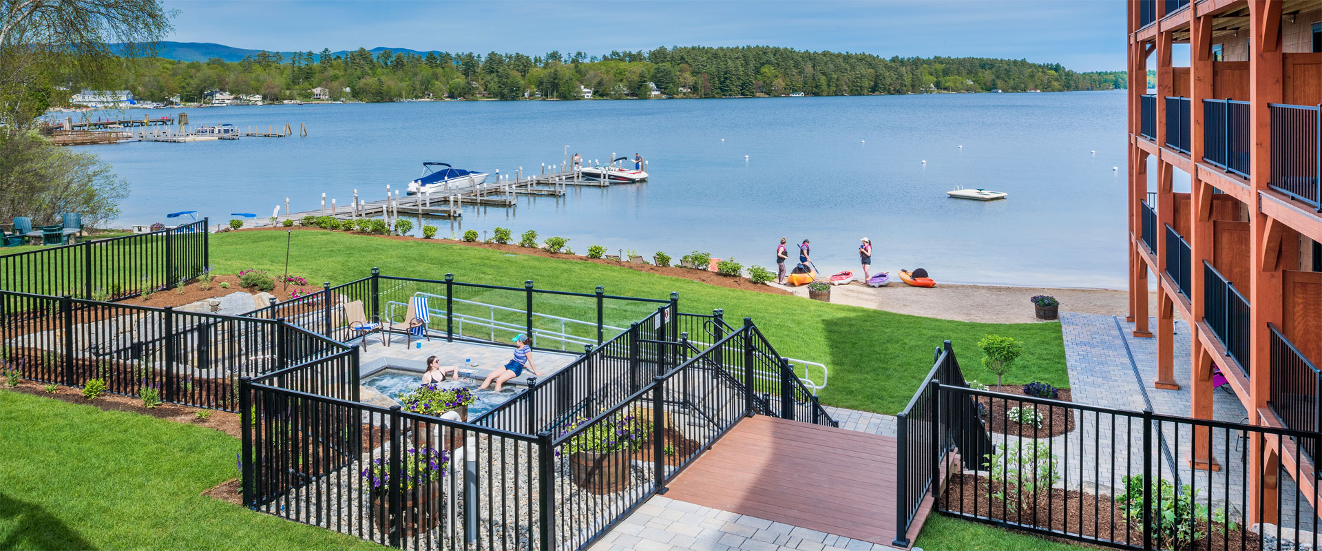 Guest quarters feature private decks or patios overlooking stunning views of the lake and mountains, while the interior space offers beautiful floor to ceiling hickory headboards and fully tiled modern bathrooms. Hotel amenities include 16 dock slips, 8 moorings, a large sauna, a fitness center, a magnificent four-season outdoor hot tub overlooking the harbor and arguably the best hotel beach on Lake Winnipesaukee.