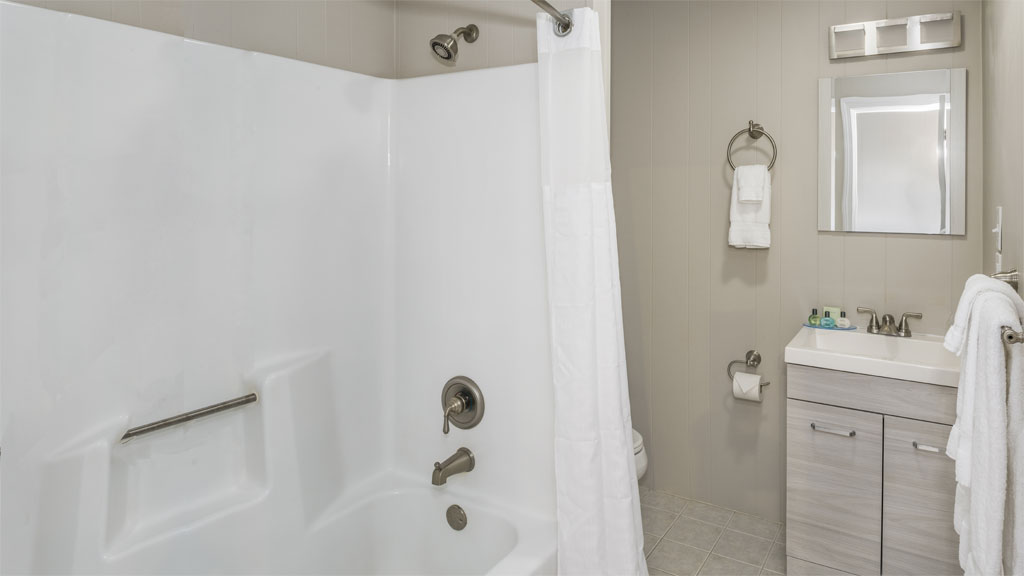 Enjoy some extra legroom in these larger efficiency rooms located above the main check-in office. With sleeping for up to 6 guests these rooms offer a great option for your next lakeside retreat with friends or family. Experience a larger room layout with two queen size beds, a full size pullout sofa and a comfortable sitting area. Room amenities include a large format, flat-screen TV, a mini-fridge, a microwave, and a coffee maker. Our Efficiency Rooms offer a solid value with the same great access to our unique resort amenities.